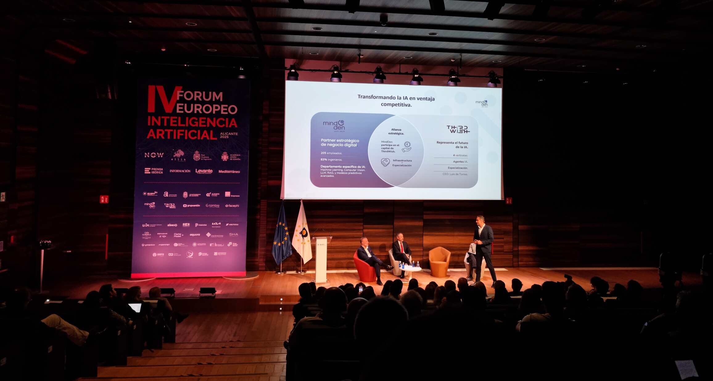 Alicante ha vuelto a situarse en el centro del debate tecnológico con la celebración del IV Fórum Europeo de Inteligencia Artificial, un encuentro, celebrado el 5 de noviembre en la EUIPO, que ha reunido a empresas, instituciones y especialistas para analizar el presente y futuro de la IA. MindDen formó parte activa del evento como patrocinador y compartiendo visión, experiencias y proyectos que impulsan el uso responsable y estratégico de esta tecnología en las organizaciones.